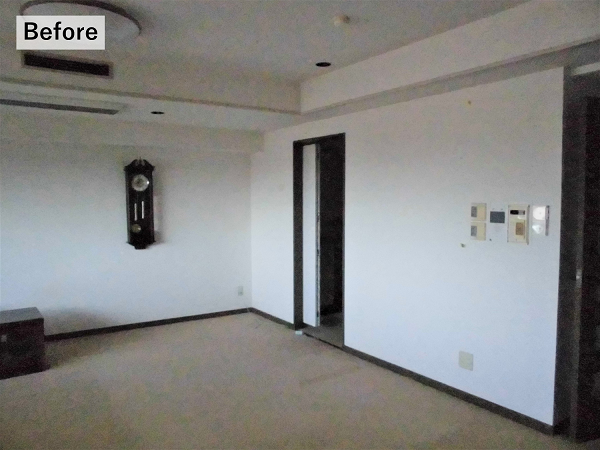 今回のマンションリフォームは、ご家族が増えるにあたって間取りを変更して広いLDKにしたい!壁付けだったキッチンをカウンターキッチンにしたい! というご相談でした。